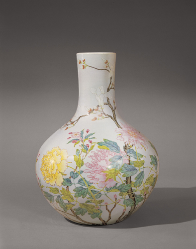 清雍正 粉彩牡丹玉兰蜂蝶图天球瓶 成交价:RMB 11,999,200