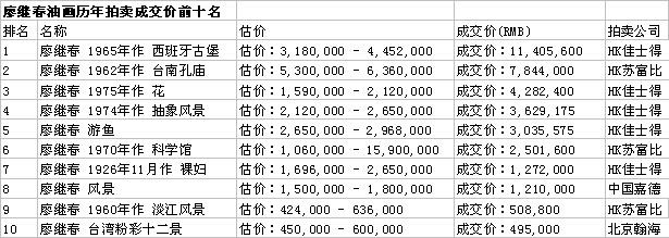 可以看出在中国近现代书画拍卖市场上引人瞩目的仍是吴冠中、林风眠、齐白石、张大千那些大师的作品,这些作品不仅具有较强的的抗跌性,同时仍会呈现一定程度地增长。