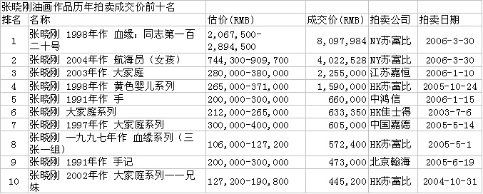 在刚刚结束的纽约苏富比“亚洲当代艺术”专场拍卖中,张晓刚的作品《血缘:同志第一百二十号》(1998年作)以809.8万元人民币的高价位居整场拍卖的第一位,并刷新了张晓刚个人作品成交价的最高纪录。上拍的另外两幅作品《航海员(女孩)》(2004年作)和《血缘:同志四号(黄色)》(1998年作),也分别以402.25万元和346.68万元的高成交价位居整场拍卖的第三位和第四位。从以上拍卖数据可以看出,张晓刚的作品在海外市场中受追捧程度较高,已位居中国当代艺术品中的高端价位。