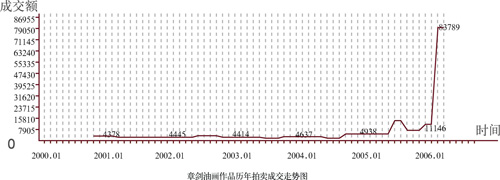 章剑运用平涂的手法形成的概况性的形色结构,利用“图像”而有有所区别,用画笔探究生活的“真实性”,一直以来都受到收藏者和投资者的青睐,其作品价格经历数年的市场起伏,呈稳步上升的趋势,章剑的作品《长安街》(2005年作)今次在纽约苏富比以7.2万美元成交。目前,章剑作品每平尺的价格在8万元人民币左右,这个价格较之2005年有了较大的涨幅,在纽约苏富比全部244件拍品中,《长安街》的成交价格位居45位,随着中国当代艺术价位的整体抬升,章剑作品在未来的走势仍被看好。