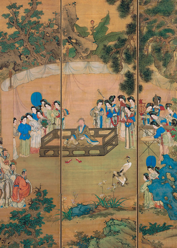 蓝瑛 陈虞胤 一六五二年作 讲帏桃李图(一对) 六曲屏风 成交价:6,840,000(HKD) HK佳士得