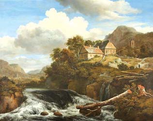 雅各布·范·雷斯达尔《带有瀑布的山间风景》