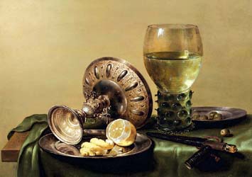 威廉·克拉斯·海达《带有玻璃酒杯与泰扎浅盘的静物》