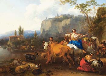 尼古拉斯·贝尔赫姆《牧羊人及其牧群在南面阳光下的渡口》