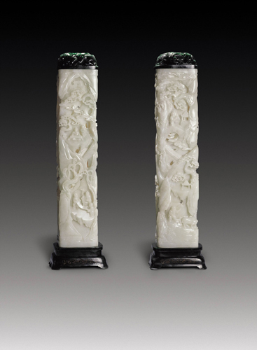 白玉雕山水人物香筒(一对)成交价: 2,000,000(RMB) 中鸿信