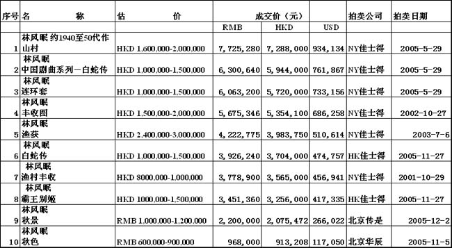 林风眠是吴冠中早年在杭州艺术专科学校就读时的业师,也是吴冠中推崇备至的中国近现代绘画大师。林风眠的艺术作品进入市场较早,20世纪90年代初期在市场力量的多方角逐下林风眠艺术作品的价格出现了第一波的上涨行情。90年代后期出现第二波上涨行情的形成,目前,林风眠作品的价格处于第三波上涨行情之中。今年上半年是林风眠作品价格急速冲高的时期,甚至可以说达到了阶段性的高点。2005年秋季,林风眠油画作品的价格有所回落,但目前的价格回落是对前期价格巨额涨幅的一种盘整,但不会形成破位而下的形态。