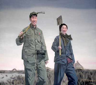 陈波的图像实际上像是一种“采集”,更接近于从照片上采集一种历史的精神境遇和人格征候,并且这种境遇和征候只适合于从照片的影像层面隔代经历。陈波的影像人物,那些在北大荒的无名者,那些在风景名胜区留影的普通者,那些被虚构的文艺人物,在陈波看来都只是一种反映历史精神征候的影像人。那些影像人物有意义,是因为他们被某种意识形态所虚构,或者是被某个意识形态时代的精神征候所影响。
