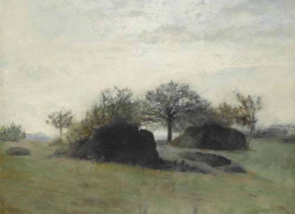 《枫丹白露景色》创作于1875年,是雷诺阿早期风景画,构图十分单纯,银白色的苍茫天空与灰绿色的空旷草地,使画面显得十分空灵,和谐的色调,更使画面充满了温馨与安谧的田园情调。