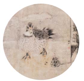 陈林 花鸟团扇 镜心 设色纸本