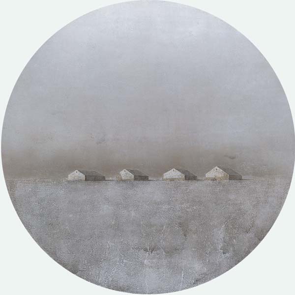 如果按我上述的判断,我对陈文骥在上世纪80年代末90年代初的一系列如《黄色的沙发》、《网上的粉红纸》、《红色的领巾》等作品更感兴趣。虽然画面中没有直接的现实喧嚣,只是一幅幅冷峻与静谧的场景和器物,但思考的逻辑是直接从现实中汲取的,折射出那个时期人们对现实的不安与茫然,在精神上无所归期的漂浮,以及对现实本身荒诞性的隐喻。到90年代末,陈文骥的创作视角开始从“自己房间”中的场景、器物,转向他目光所及的“窗外风景”。这种风景的描绘都是从苍荒的情景展开的。《至尊系列》作品在一片灰朦的色调中突兀出烟囱、旗杆、路灯,《远景》、《弱呼吸》等作品潜隐出时代的气息和新时代勃勃生机背后潜藏着的暗影,《终无限》、《留住光》则进一步聚焦的是他生活在郊区城镇特定环境所导致的冷漠、单调和缺乏个性,以及现代主义所带来的视觉上的不毛与荒凉,更深地延伸出他对现代生活无机品质的质疑。这种丧失了文化记忆的城市形象,事实上不仅仅作为一种现代主义文化象征的呈现,它同时也是中国普遍城市开发与规划形象的一种真实面貌。与他早期的景物相比较,其创作思路是一脉相承的,只不过具体的场景有所不同,在油画语言上更为纯粹、简约。而新近的作品如《三回》、《渐离》、《自觉》、《一决》等,好像与现实愈来愈远而显得淡泊、无为,与前卫也是离去之后的渐行渐远,更注重个人内心静观的认知与体验,以及对油画语言的不断深入与纯化,连作品的题目也是充满了禅宗的意味。试图在在意念与意境中体现东方的情怀,别有一番新鲜的语感和语境,显示了他的绘画跨出了对于“似真性”的追求之后,在一种非具体的关系中,凸现了一种“不确定性”的作用,一种无法把握的无限变动。