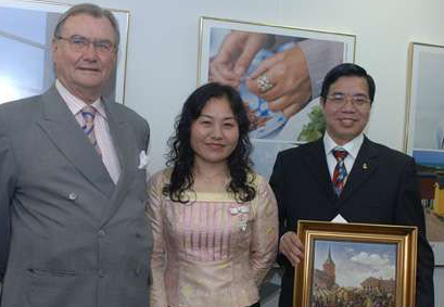 在授勋仪式上,亨利克亲王还向香港特区区议员林启晖赠送来自安徒生故乡欧登塞市的一幅珍贵陶瓷画。亨利克亲王代表欧登塞市议会嘉许林启晖在中国内地和香港为推广安徒生和欧登塞市,以及促进中丹两国文化交流所作的努力和贡献。