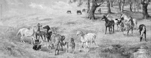 1916年,徐悲鸿在哈同花园所创建的仓圣明智大学所组织的竞试中,他就是以巨幅水彩画脱颖而出,后被该校请去讲学和作画,这使得徐悲鸿得以和康有为、王国维、陈散原等大家往来切磋,聆受教益,也促使徐悲鸿在书画上也突飞猛进。作为酬劳,明智大学以1600现洋助他前往日本游学。这件水彩画《群马》就是在日本留学期间重要的代表作品。这件作品描绘了马群健壮活跃和原野的勃勃生机,场面宏大。在马匹的刻画上显示出了徐悲鸿先生的“西方画之可采入者融之”的理念,举例来说,画面中距离观者最近的一匹灰马,以尾巴朝向观者,整个形体处于巨大的透视角度,这种透视角度是经常运用于西方绘画,可以看出,年轻的徐悲鸿对西画透视法把握得很熟练。构图上,这件作品也是匠心独运,作者有意将骏马安排在画面的右侧,后面布以树木,使整个画面形成水平与垂直的基本构图,在画面左侧,留出的是大片的原野,借助云朵形成画面的平衡。这种构图显示出了虚实相间的中国画独有的特点,在颜色上左白右黑,强烈的颜色对比更是体现出徐悲鸿先生对中国画表现传统的精到的理解。这件作品可以说是融中西绘画特点之优长的佳作。买到这件作品的藏家可以说是“独具慧眼”。