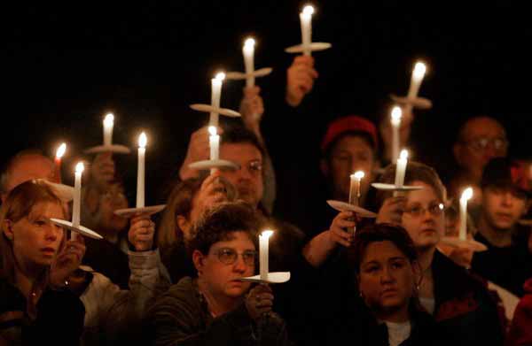 爆炸发生后,矿工的家人和亲友们迅速聚集到与矿山大门一街之隔的教堂前。蒙蒙细雨中,他们或坐在自己的车中,或坐在红十字会为他们搭起的帐篷里,焦急地等待着消息。入夜,矿工家属们围坐在一起,他们点起了蜡烛,在心里默默祈求上苍保佑井下的亲人。