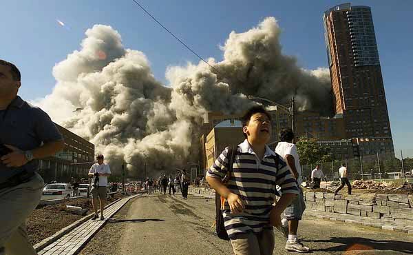 2001年9月11日,美国纽约,纽约世贸大厦遭到恐怖袭击。惊慌失措的人们。
