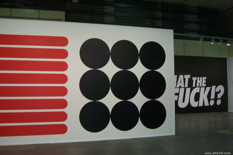在传达这种都会经验上,妮芙雅思认为,抽象艺术适切转译、梳理了现实的混乱;她并注意到在当代──尤其在柏林,艺术与音乐、视觉设计等领域的合流现象:与音乐的结合贴切诠释了当代生活的抽象性,而结合现演唱、艺术、时尚、社会批判等的手法则体现了当代精神。于是,展场入口即见(本身也经营时尚品牌、设计音乐专辑封面的)保罗.史诺丹(Paul Snowden)在墙上所写的斗大字样「搞什么鬼」(What the fuck),和它相映成趣的是单纯视觉图形(红线条、黑圆点)构成的壁画,由史帝芬.达弗隆(Stéphane Dafflon)所作。另一侧则见约翰.阿姆勒德(John M. Armleder)以圆形灯管铺成的光墙,与之相邻的是来自英国、现居柏林(也创作音乐)的戴莉雅.贡札蕾(Delia Gonzalez)和盖文.卢松(Gavin Russom)以黑色音箱堆栈的作品,交织出属于都会的声光印象。