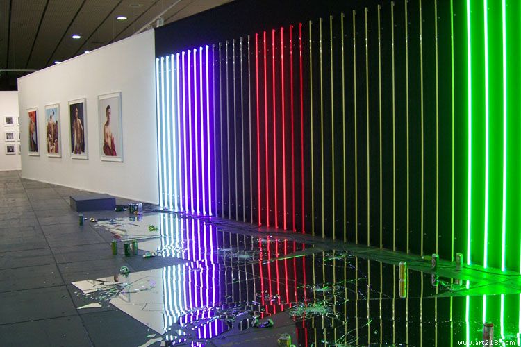 现居柏林的知名英国艺术家塔西塔.蒂恩(Tacita Dean)于此展出的《宫殿》(Palais)取自其同名影片,拍摄柏林共和宫(Palace of the Republic)景观,作为柏林政权更迭的象征性建筑,共和宫在灰黄的玻璃上呈现凋零的映像。曾在柏林经营地下舞厅的丹尼尔.普夫洛姆(Daniel Pflumm)的作品沿袭其一贯作风:援用现成商标图案等媒体产物,转化成视觉上极简的图样,但注入对于结构的批判。作品往往含有摇滚乐式能量的罗瑞.贺思博格(Lori Hersberger)的装置作品则结合霓虹光墙、破碎镜片和酒瓶,凸显彻底的虚无感。