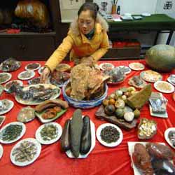 长沙湘韵阁九千嘉石堂用石头摆出了一桌“石头盛宴”。这些由广州收藏家侯嘉鸣所珍藏的奇石,摆入碗碟后酷似菜肴和点心,被喻为“满汉全席”石头宴。