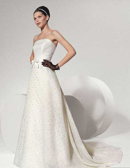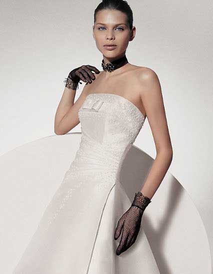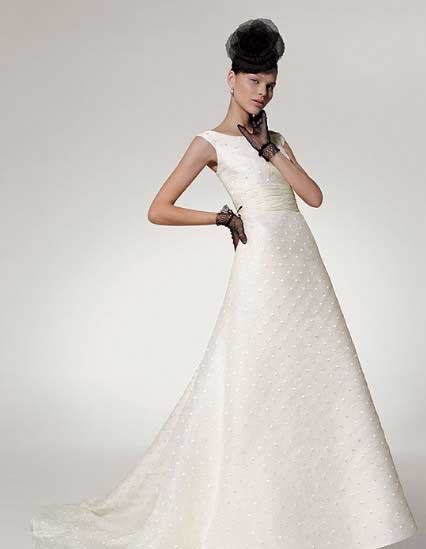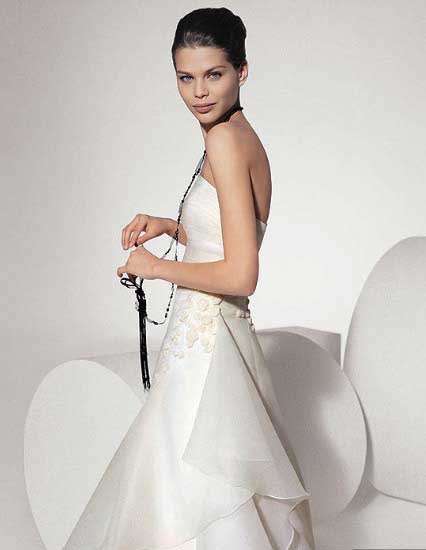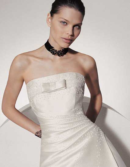 黑白两生花,rosaclara07新款婚纱以米色为基调,讲究线条的流畅性和款式的简洁,并将黑色作为耀眼配饰,衬托新娘天使般的圣洁。