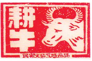 以其他一些生肖为图案的火花为数不多,有“三鼠为记”(上海益盛火柴厂)、“耕牛”(四川民众火柴厂)、“虎”(四川乐山同记益新火柴厂)、“月兔”(上海大中华火柴公司)、“猪唛”(云南五华工业社荣记)等。相对来说,蛇在早期火花中出现最少,除了无厂名的“李寄斩蛇”火花及未出现蛇图却与蛇有关的“白蛇传”火花外,很难再找到其他的“蛇花”了。
