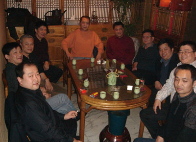 左起著名画家董良达、评论家姚刚、北京画店经理魁华、嘉德拍卖公司徐军、收藏家刘志远、收藏家李世辉、收藏家丛者明、收藏家岳文超、收藏家赵旭、保利拍卖公司王鹏