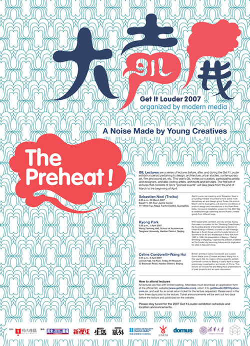GIL Lectures are a series of lectures before, after, and during the Get It Louder exhibition period pertaining to design, architecture, urban studies, contemporary art, film and sound art etc. This year’s GIL invites co-curators, participating artists and designers, and also visiting artists, architects and scholars. The first set of lectures that consists of GIL’s “preheat events” will take place from the end of March to the beginning of April: