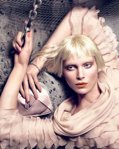 高级时装品牌Valentino2007年春季的广告大片有别于2006年冬季广告的个性创意,更加注重了唯美高贵的感觉。每个品牌都会将本季最得意的作品拍成广告,其中的作品更是代表着设计师对于最新时尚潮流的解释。