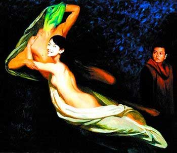 4月1日,记者在猫扑看到这幅徐静蕾的裸体油画,老徐上半身至臀部完全裸露,只披一件薄纱,她侧身抱住一个青蛙脑袋人身的怪物。不远处,王朔身穿红衣,回头凝视他们。这幅油画的作者,正是恶搞名人油画系列创作者安迪。昨天,安迪告诉记者,这幅画画于去年,是恶搞名人油画系列之一,因近日王朔与徐静蕾近日成了舆论的焦点,画作又受到网民关注。对于为何选择画徐静蕾,安迪说:“徐小姐属于智慧型女性,智慧女性多是端庄典雅,很少有裸体。经常裸的明星,画起来反而没意思。”安迪表示,徐静蕾与裸体,正是追求反差效果。他认为,作品是对徐静蕾的一种美化。