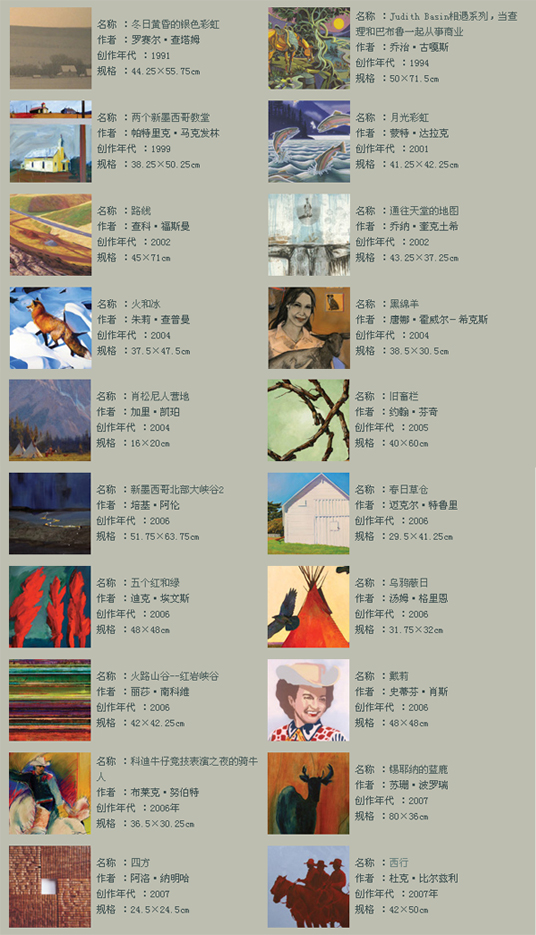 早在2004年,国际子午线中心和中国对外展览公司共同举办的,以中国西部古代丝绸之路为主题的名为“丝绸新画”的当代艺术展览,在美国多个城市巡回展出,曾经让美国观众看到了辽阔的中国西部景色,以及由此生成的文化想象。“美国西部当代艺术展”和“丝绸新画”是两个互访的展览,在结束北京之行后,该展将奔赴乌鲁木齐、西安、上海、青岛、广州和香港进行巡回展。