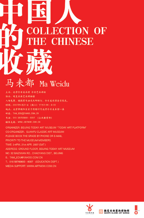 关于马老其人,知名度甚高,不做多论。关于马老说“中国人的收藏”,听过的人恐怕就不那么多了。尤其是我等碌碌又歆羡古典文化之辈,巴不得天天在报纸上、电视上、杂志上、书上——见到马老说,说“中国人的收藏”。迄今为止,我听过的最震撼的关于马老的言论是,观复不过是“文物界的希望小学”,私人博物馆在中国还处于“野生状态”,这几年似乎好点了,有了“暂住证”了,但是发展呢,还得几百年吧。马老就是这样说的,这跟马老在新浪博客上讨论那件元代鬼谷下山的青花瓷器完全是两种语气。马老玩收藏,建博物馆,是自己的爱好不假,然后最后想的还是“回馈社会”。