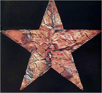 的代表作系列之一,早在2001年中国嘉德拍卖会上,《五角星之二》(1999年作)就以49.5万元成交。此次苏富比春季拍卖推出的《五角星》,更是冷军作品第一次在国际市场中拍出如此高的价格,受到了国际买方市场的肯定。