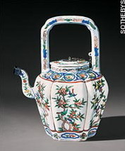 中国香港苏富比拍卖行日前以107.9万英镑(约合人民币1641万元)的天价,拍出一件曾由英国女王伊丽莎白一世收藏的中国茶壶,买家是一位由伦敦古董商代理的神秘客户。据悉,这件瓷器产于公元16世纪末期的中国明代,是当年由中国传入英国的