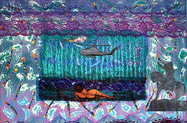 作者根据在自己位于加利福尼亚的家附近发生的一次军事演习创作了这幅名为《我家后院的战争》的作品。