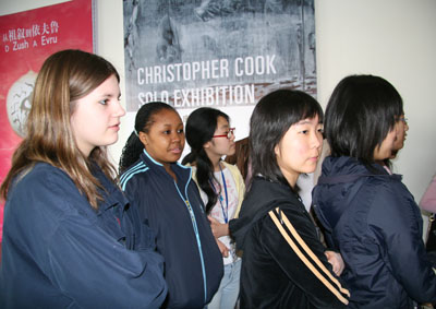 4月17日北京今日美术馆迎来了北京乐成国际学校30余名师生,观看《从祖叙到依夫鲁》展,并积极的参与到作品当中。(展出作品中有艺术家设计的软件,可以让参观者亲自使用并创作作品。)同时,也对美术馆的设计产生了浓厚的兴趣,老师和学生们认为今日美术馆的建筑很漂亮,经过美术馆工作人员的讲解,更加了解了今日美术馆的发展、构造,并询问了今日美术馆相之前举办的的展览的信息, 并表示想与今日美术馆建立长期的联系.