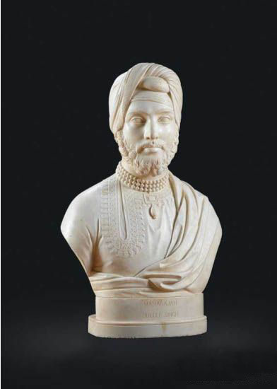 伦敦讯 大约在150年前由英国雕塑家John Gibson所作的印度王子锡克教的英雄Maharaja Duleep Singh的半身胸像在4月19日New Bond 街101号Bonhams印度和伊斯兰艺术拍卖中以170万英镑售出。这件作品预先估价为25,000 ~35,000英镑,但因印度和英国买家对此件作品的特殊兴趣以致作品价格节节攀升。