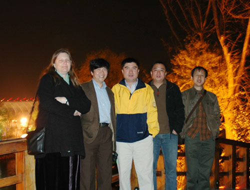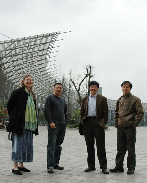 届成都双年展策展人冯斌(左二)、沈揆一(左三)、林似竹(Britta Erickson,左一)、鲁虹(左四)