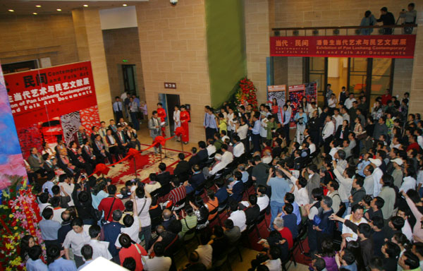 为纪念毛泽东同志《在延安文艺座谈会上的讲话》发表65周年,展示全国宣传文化系统“四个一批”人才建设优秀成果,同时也是为了迎接第二个中国文化遗产日,由中国美术家协会、中国民间文艺家协会、中国美术馆和中共山东省委宣传部共同主办的《当代·民间——潘鲁生当代艺术与民艺文献展》于2007年5月23日在中国美术馆隆重开幕。