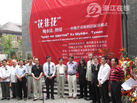 一场“火花四溅”的艺术盛宴,两位中俄艺术家的一次近距离艺术对话……今天上午10时,由中国美术家协会、俄罗斯美术家协会、中国美术学院、俄罗斯列宾美术学院联合举办的《花非花——何水法、图曼中俄艺术家对话展》巡展的第一站在杭州开幕。