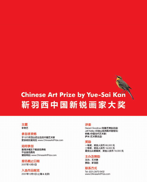敬请访问活动网站(www.ChineseArtPrize.com )以获取更多活动信息及下载申请表格。