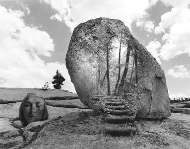 “创作的过程就是不断地在玩”,1934年,杰利·尤斯曼在底特律出生,30年后“成像后合成”摄影术诞生。先用传统120胶片相机拍摄图像,然后再于暗室里加工成为全新的创作,这一摄影技术打破了按动快门前的预先拟想过程及其所代表的传统摄影美学。杰利·尤斯曼在暗房里同时用7台放大机“玩”出“纯手工蒙太奇”艺术图像,海天、树石、女人和支离破碎的风景,产生夸张变形的荒诞效果,“欺骗”了读者的眼睛。作品在其他国家展出时,曾经有观众问他:“你在哪里找到一块带门的石头?”