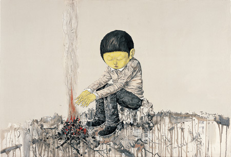 李继开 李继开的画,很让人喜爱。在他的画前面,观众可以停留很久,因为画面营造出种种安静的气氛,能唤起观众自身的记忆。在他的虚幻世界里,想象可以展翅飞翔,夹杂着无奈和困惑的淡淡哀思。李继开画自己,画自己的日常生活,画自己的奇思妙想,每当观者做着和画中的男孩子相同的事情,比如发呆,呕吐等等的时候,就会想起他的画,仿佛那就是自己,因此,再平淡的生活也有了童话般的宿命。 李继开就是这样,身藏在美术学院里,自在地工作生活,关注着每天的日子。而喜欢他的作品的人们,却在世界各地的拍卖场上竞相抢购。正如他自己说的,他乐于去描绘胡乱的想法,感受心灵的自由。因为,他是心灵的捕手。