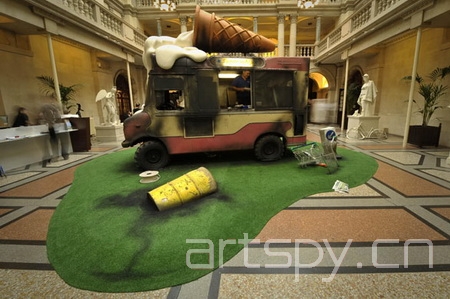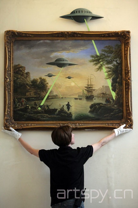 这次展览是班克斯有史进行的最大型的作品展示,展览将免费向公众开放,将持续到8月底,估计该展览会吸引超过10万的参观者。下面就让我们来看看这些6月13日才面世的作品。这是班克斯对博物馆展览方式进行的一次涂鸦,都是非常有趣的作品。