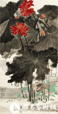 张大千1947年 《嘉耦图》 立轴 19106万港币 2011年香港苏富比梅云堂专拍