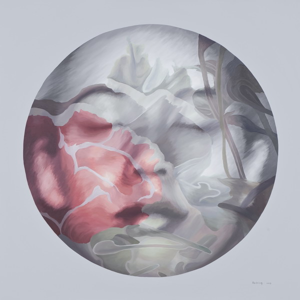 在“浮生艳影”系列作品的创作中,从作品形式语言上,叶红杏对传统绘画图像的引用、对自我形象不断复制,以及对商业广告形式的挪用,突出了观念表达的功能性,她的这一系列作品的最初雏形来自一组广告灯箱的设计;而从创作的内在本质上看,叶红杏用身为女性的温婉视角注视着商业社会的穿透力与巨大活力,作为一位女性艺术家,她不追求身体叙事的碎片式的拼贴,宏大叙事也从未被叶红杏的个人写作所采纳,以主动的主体参与到对消费时代的评判中,如果将画面第一层的花卉图样看作消费文化的隐喻,第二层采用闭目的个人形象,其本身也是一种姿态。