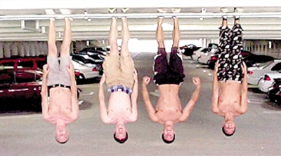 这个暑假,NBA球星霍华德带头搞起了行为艺术“趴街”,一时间不少球星跟着“趴”,从自动售贩机到拖拉机,比的就是谁趴的物件更离奇。现在你还跟着他们“趴”,那就OUT(出局,过时)了,眼下美国视频网站和微博上传播最广的最新全民行为艺术,叫“倒挂蝙蝠侠”。看起来很酷,据说还有健身功效,不过大家可别模仿,已经有人学蝙蝠侠送了命。