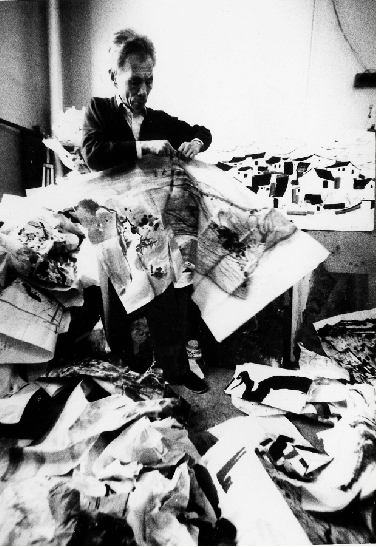 1991年秋,吴冠中在工作室中毁掉200多张作品。蔡斯民/摄 |