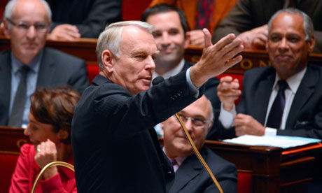 法国总理让-马克·艾罗(Jean-Marc Ayrault)在法国国民议会大厦做预算讨论 图片来源:弗雷德·杜福尔(Fred Dufour)/法新社(AFP)/盖蒂图片社(Getty Images)