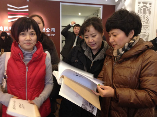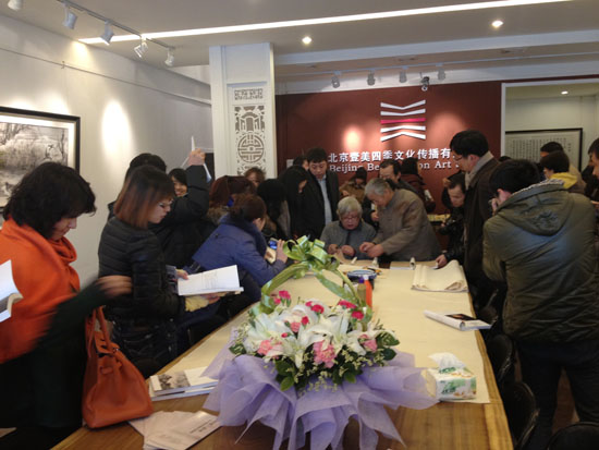 艺术家陈宏年开幕现场为众粉丝画册签名