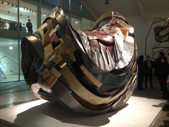 王郁洋的作品涵盖了装置、摄影、影像及绘画等不同媒介,带有很强的思辫性。他用幽默的、虚构奇观的方式虚拟一个物化的实体,来探究和表述人的身体、经验及认知之间的关系,同时也探讨了人造现实、媒体、历史感知与身体认同之间的逻辑。装置作品大多都采用黄铜、紫铜、不锈钢、铁、木材、大理石、花岗岩、玻璃钢、塑料、石膏、皮革、海绵等材质,将整个展馆在色彩呈现上显得极为统一,而每件作品在构图的立体呈现上又凸显其各自的特性。