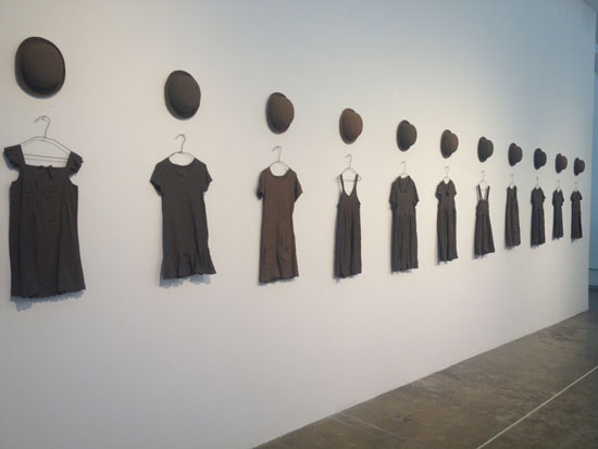 彭贤祥 《女孩系列》 95×45cm×12 大肚山土、墨、膠、衣服、帽子 2013