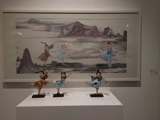 王艺展出作品《梦回魏晋》(前)《舞乐图》(后)
